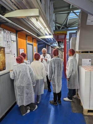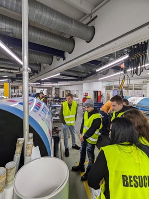 We then immersed ourselves in the exciting world of packaging and its challenges. This insight was followed by a comprehensive tour of the company, which took us from incoming goods through the entire production process to the laboratory. Our guests were accompanied by our dedicated apprentices Adnan and Ali, who gave them valuable insights into their day-to-day work.