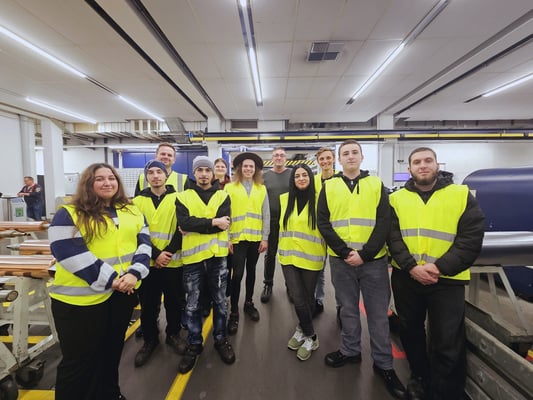 The purpose of the visit was to provide the trainees with further training so that they could not only learn about the production of gravure cylinders, but also gain their first insights into the packaging industry and the practical use of printing cylinders in modern printing presses. The visit was designed to give the trainees an insight into the packaging industry and the practical use of printing cylinders in modern printing presses - an aspect that was previously not possible in everyday training.