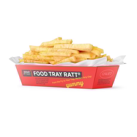RATTPACK® trays are the perfect choice for chips, meatloaf or burgers. With their grease and water-repellent coating, they are even suitable for microwaves and ovens.